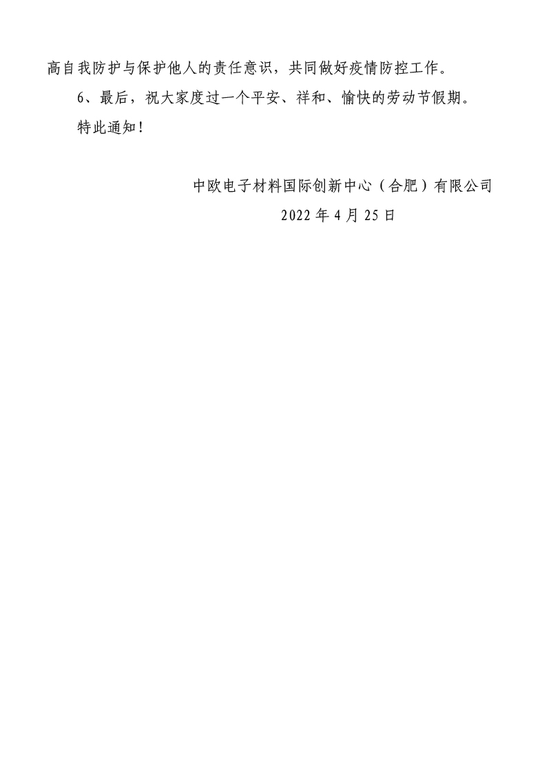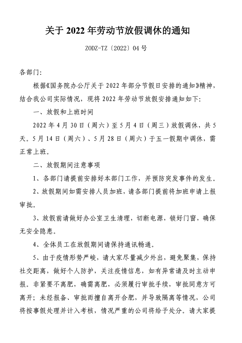 关于创新中心2022年劳动节放假调休通知