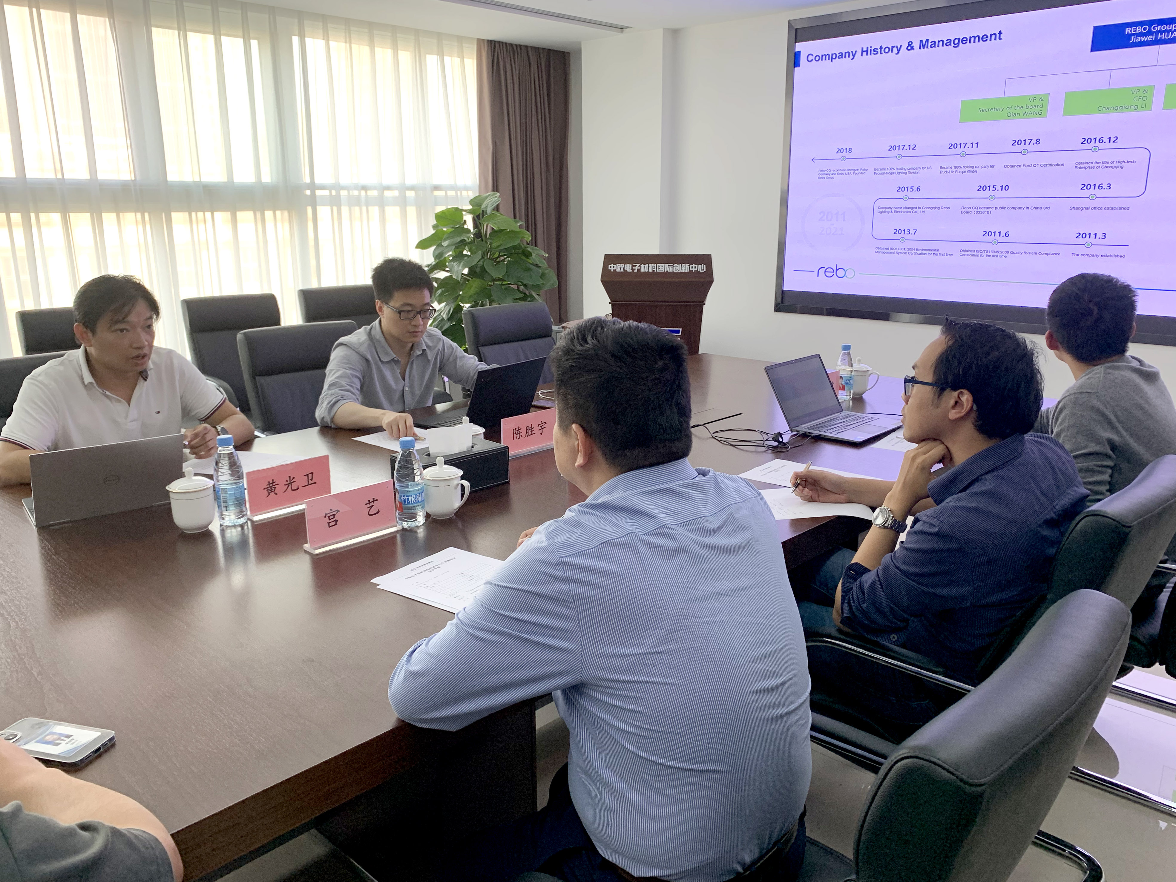 11月10日,重庆睿博光电股份有限公司CTO黄光卫、重庆博奥实业(集团)投资总监陈胜宇来访WG官网(以下简称“创新中心”)。
