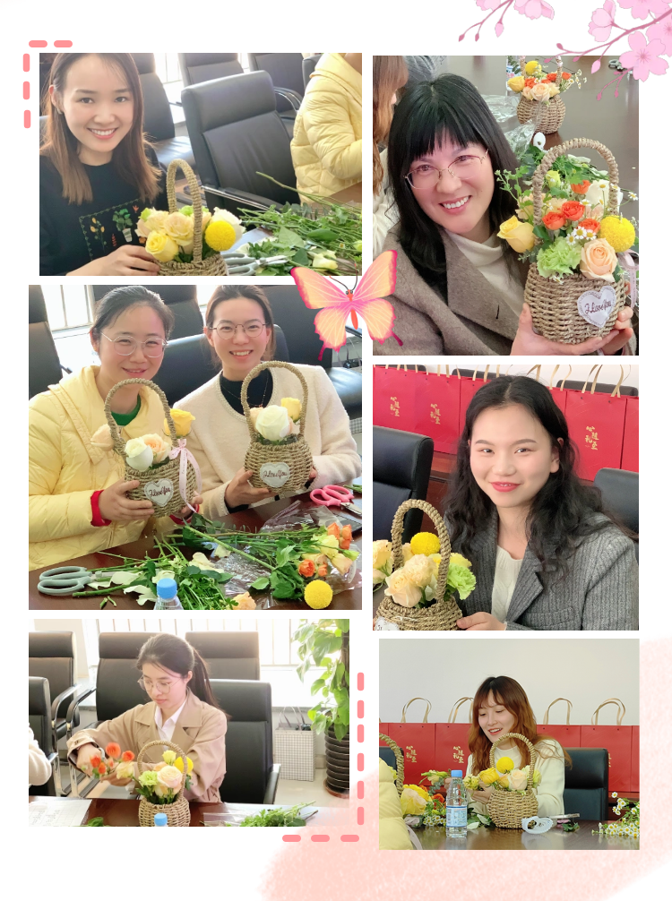 活动伊始,创新中心向所有参与此次活动的女职工送上了暖心节日祝福。花艺老师从插花艺术的基础知识、工具使用、插花造型、色彩搭配等方面进行了讲解。大家在花艺老师的指导和示范下,修枝剪叶,精心搭配,设计造型,忙得不亦乐乎、乐在其中,不多时,一篮篮春意盎然、各具风格的插花作品呈现在大家眼前。大家挨个展示自己的作品,相互欣赏,热闹非凡。此刻,女职工们暂时放下繁忙的工作,尽情享受插花的乐趣,感受生活的美好。