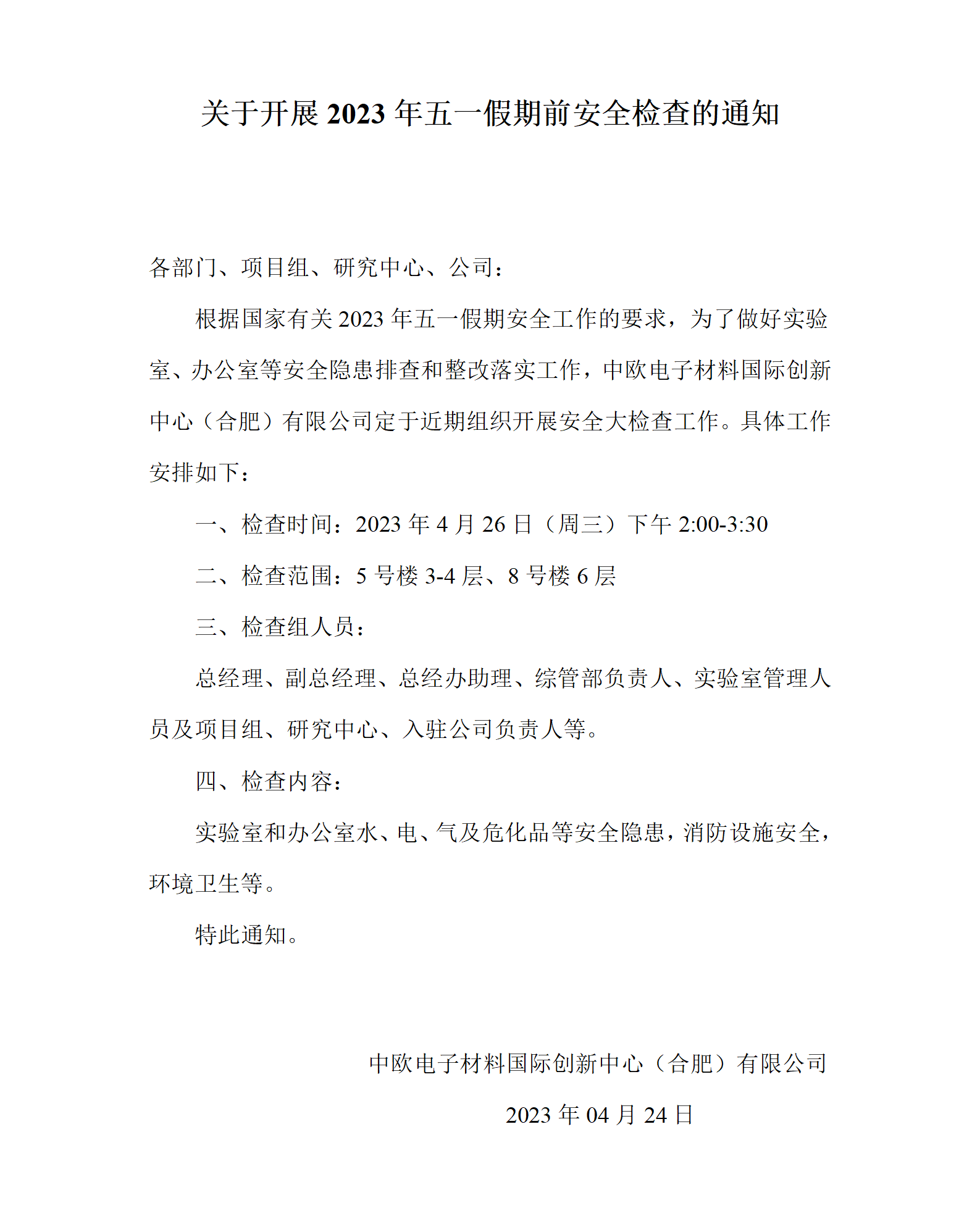 WG(中国)2023年五一假期前安全检查的通知
