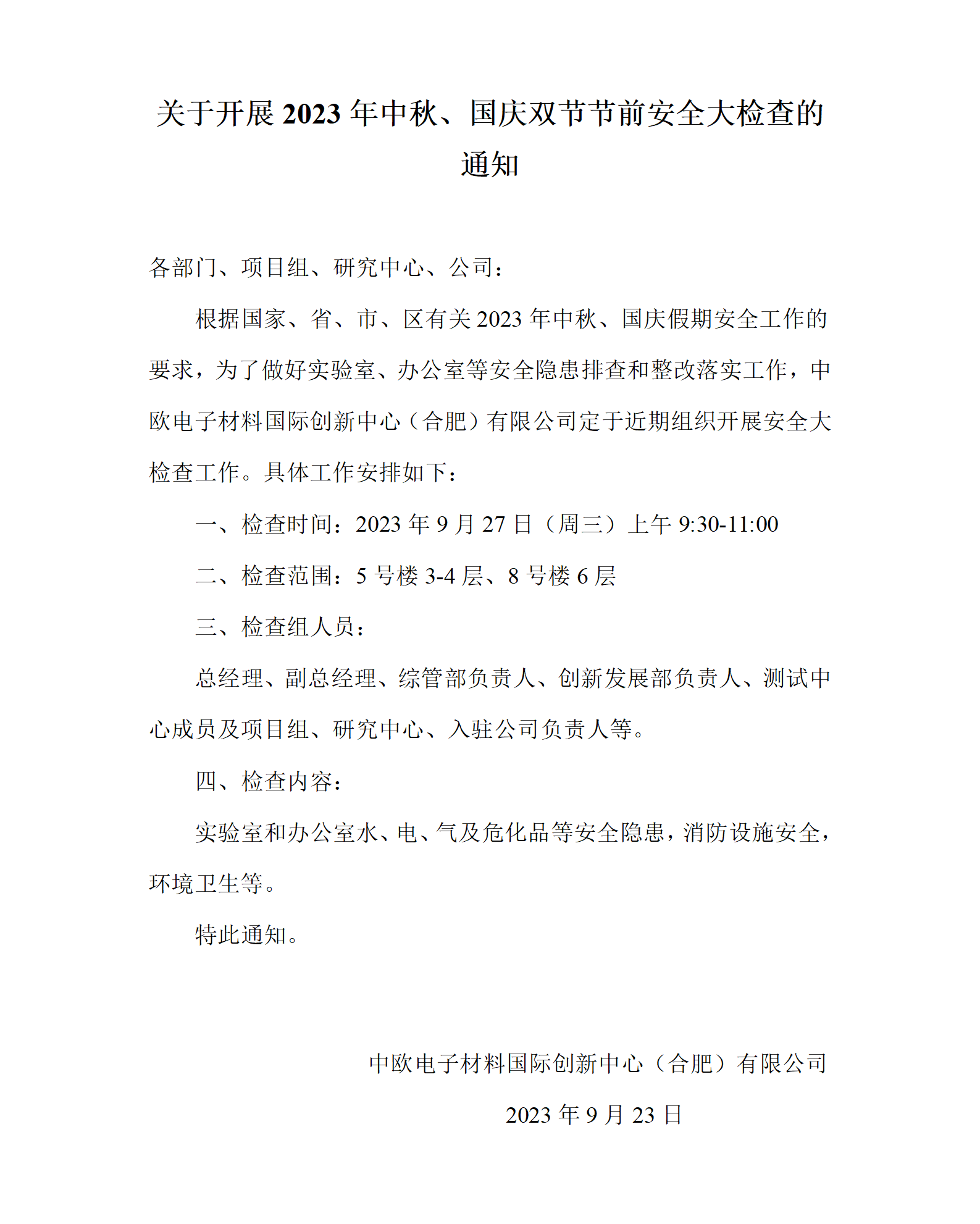 WG(中国)2023年国庆中秋双节节前安全大检查的通知