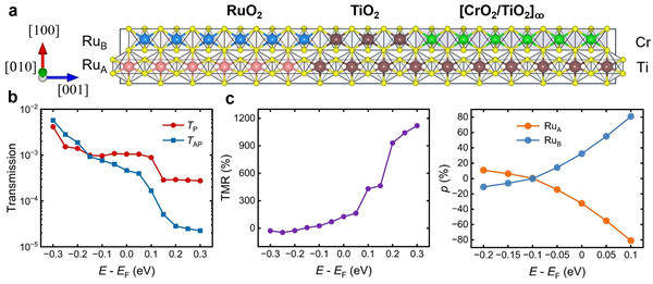 图3. RuO2/TiO2/[CrO2/TiO2]∞ (001) 磁性隧道结。