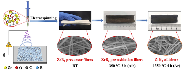 图1. ZrB2晶须的制备流程图。