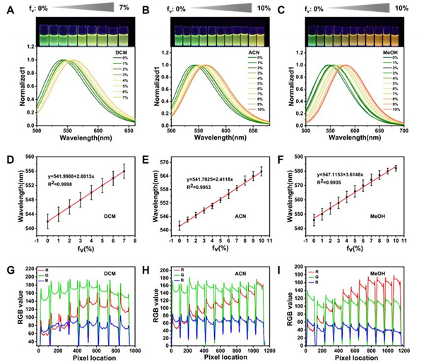 图2.基于AFL的荧光传感器的溶剂检测。